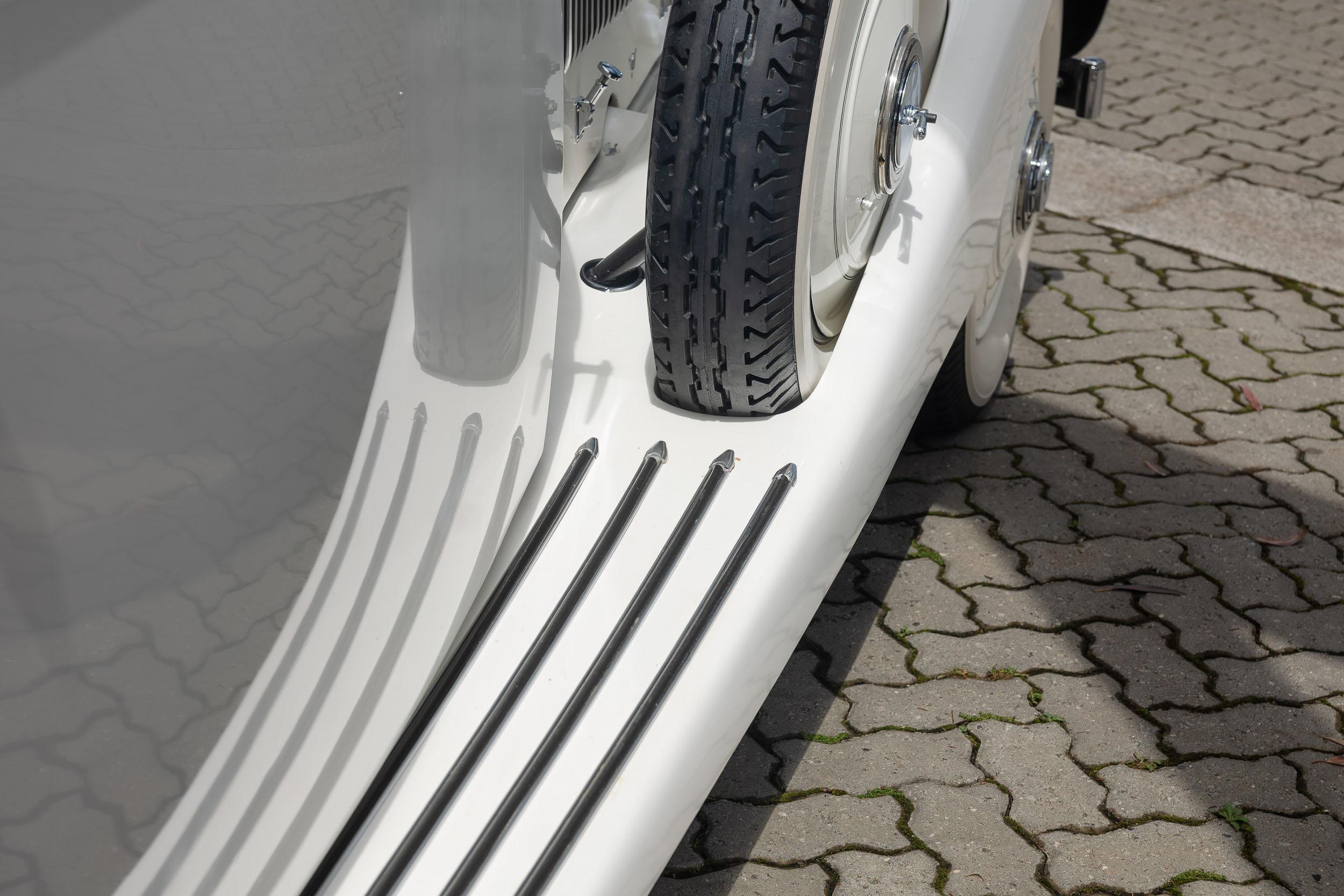 O que aqui está em leilão é de 1932, como comprova seu chassi com o prefixo GAU, no ano que teve o maior número de inovações introduzidas pelo fabricante. Sua bela carroceria com volante à direita, é assinada por “J. Compton” uma empresa especializada em fabricar carrocerias e também remodelar antigos Rolls-Royce.