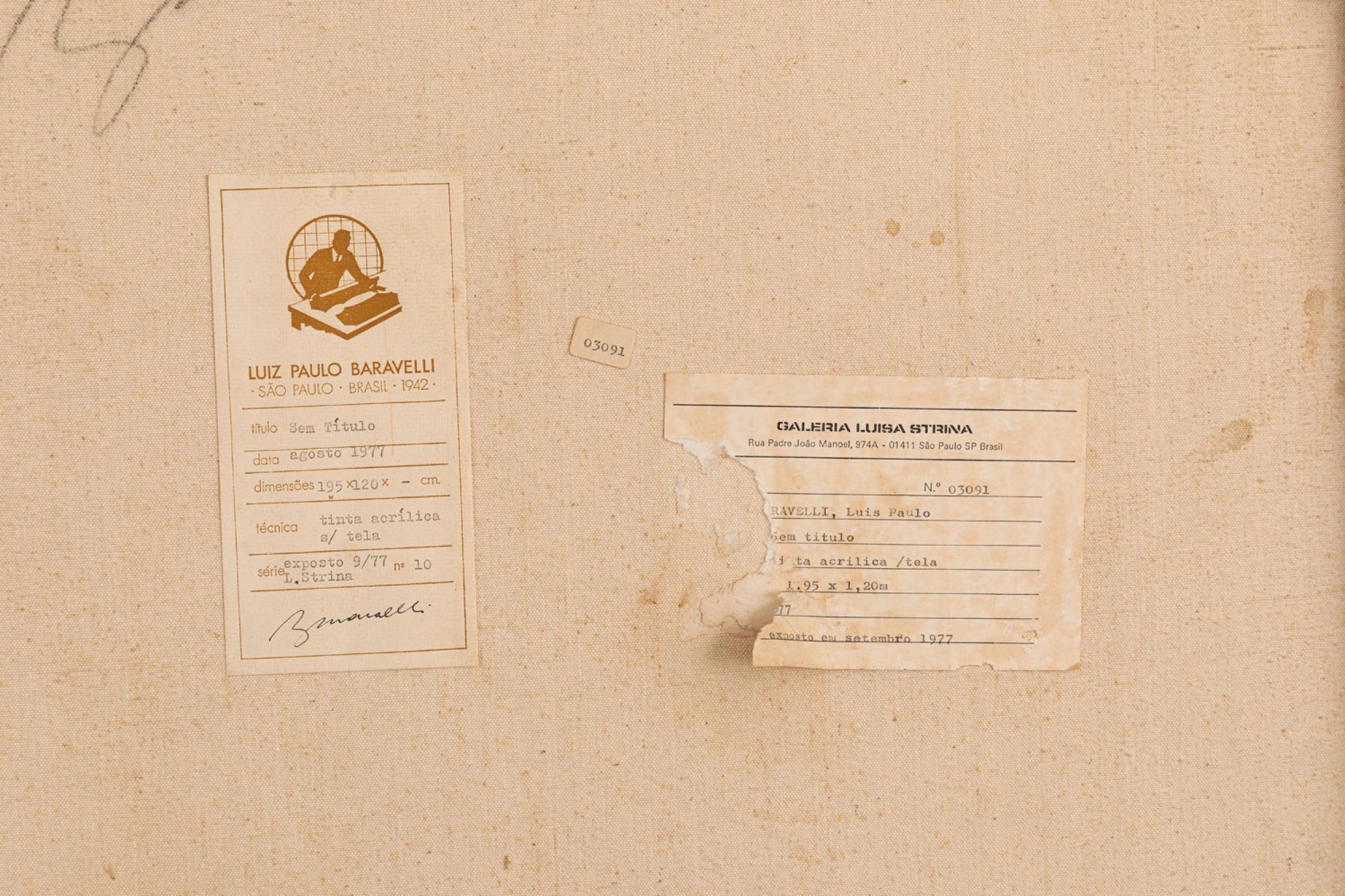No verso, etiqueta do ateliê do artista e da Galeria Luisa Strina.